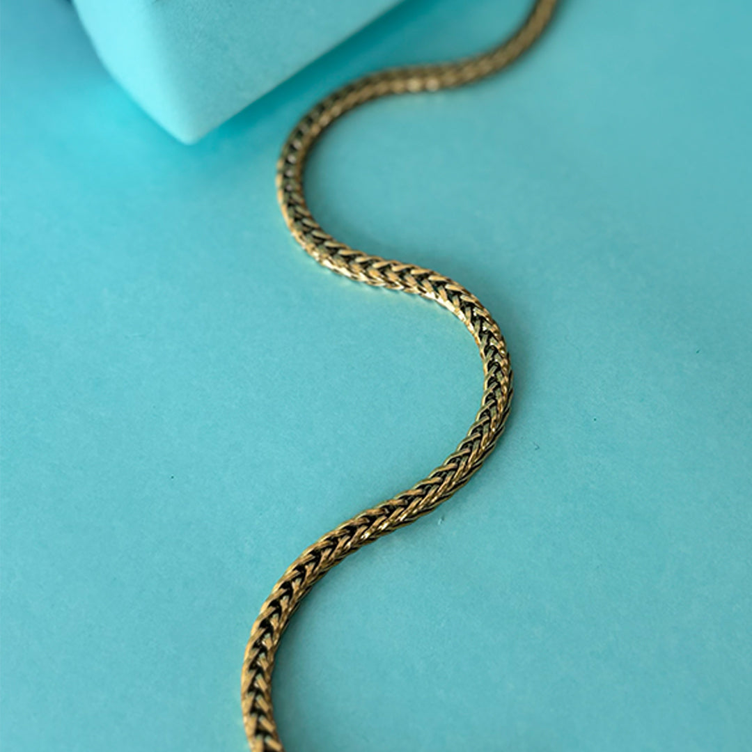 Firoza Gemstone Locket - Golden + Classic Flat Wheat (Foxtail) Chain